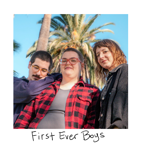 First Ever Boys, the self-titled debut album from LA-based trio First Ever Boys, is the stuff all good pop and all good punk is made of: loud guitars, breakneck drums, hooks as heavy as a tour-ready Ford Econoline. From the opening guitar blasts of “Guts” to the sugar-rush closer “Stuck”, singer and guitarist Lo Bru, bassist G Pro, and drummer J Villa take no prisoners as they refashion mental illness (“3 Ways to Stop Talking About Yourself”), navigating dating apps (“What Are You Looking For On Here”), and suffering under capitalism (“Opposite Day”, “Stuck”) into the most exciting, melody-laden, jump-in-the-pit and scream-your-lungs-out album this year.